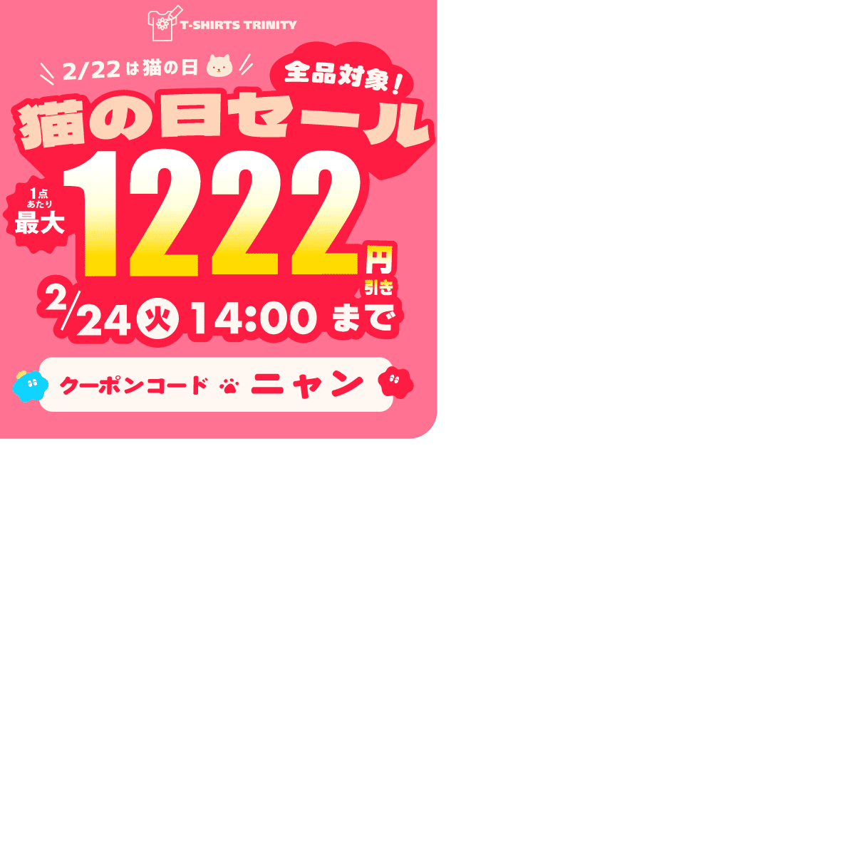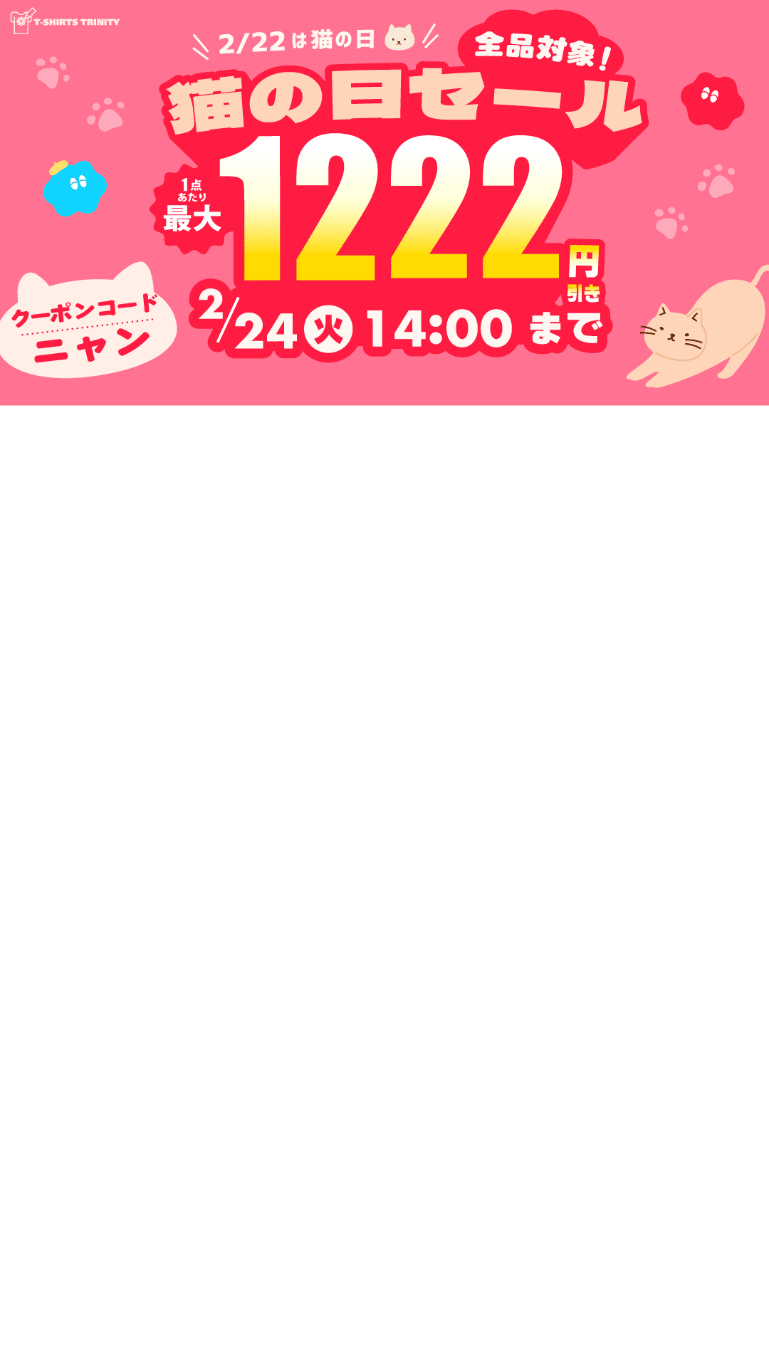 【全品対象&最大1,222円引き!!】Tシャツトリニティの猫の日セール♪
